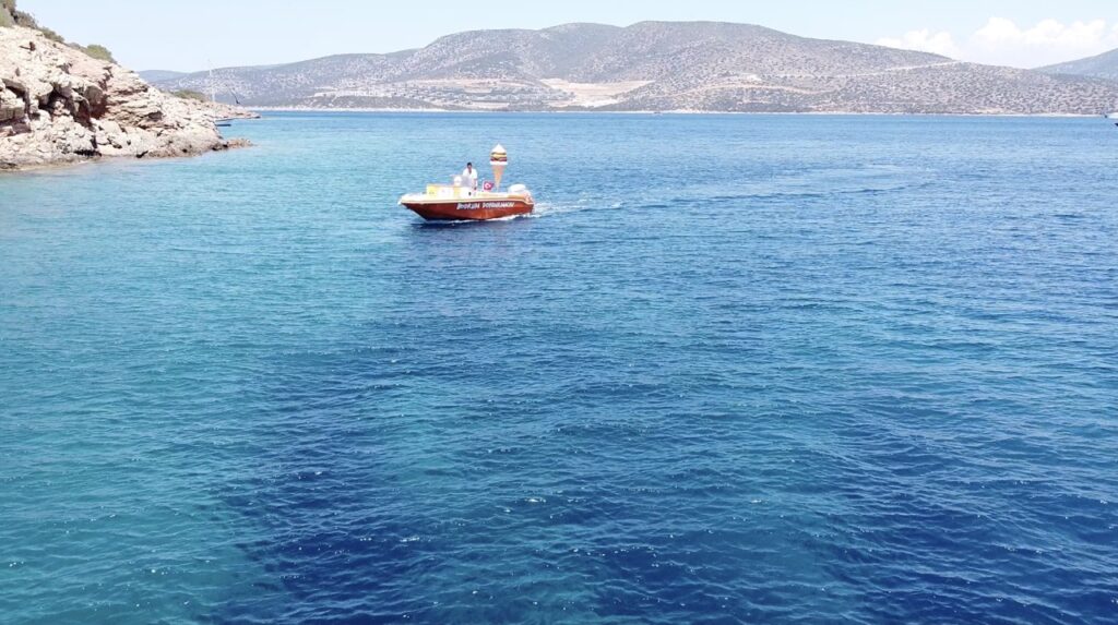 Deniz tutkunları su üstü dondurma timi ile Ege'nin mavi derinliklerinde dondurmadan mahrum kalmıyor...